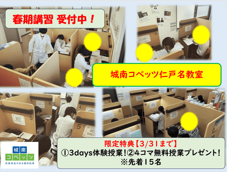 【成績アップ3days体験授業!!【先着15名】】 (~3/31まで)春期講習の前に「城南コベッツ」の指導が体験できる、3日間の体験プ…