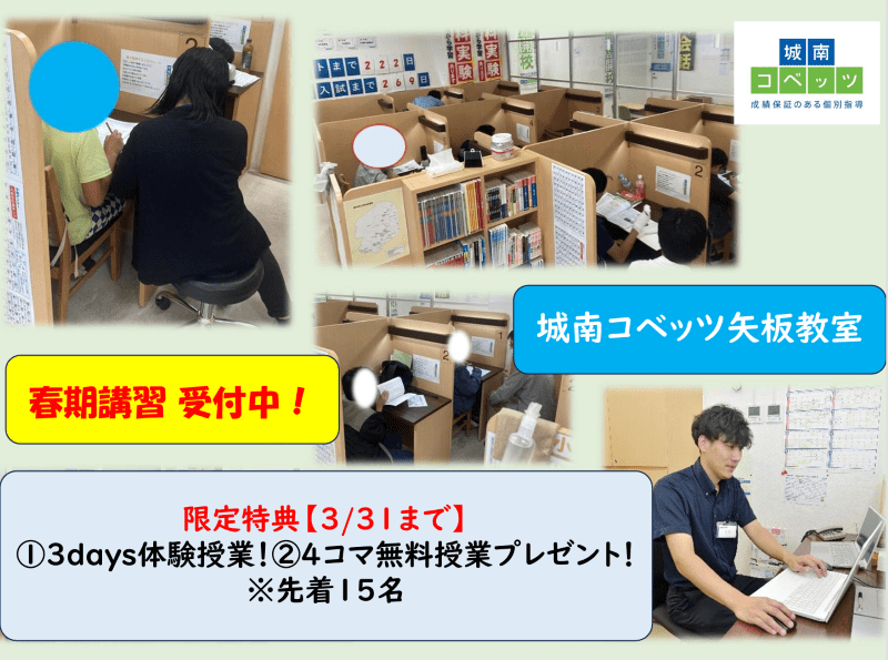 【成績アップ3days体験授業!!【先着15名】】 (~3/31まで)春期講習の前に「城南コベッツ」の指導が体験できる、3日間の体験プ…