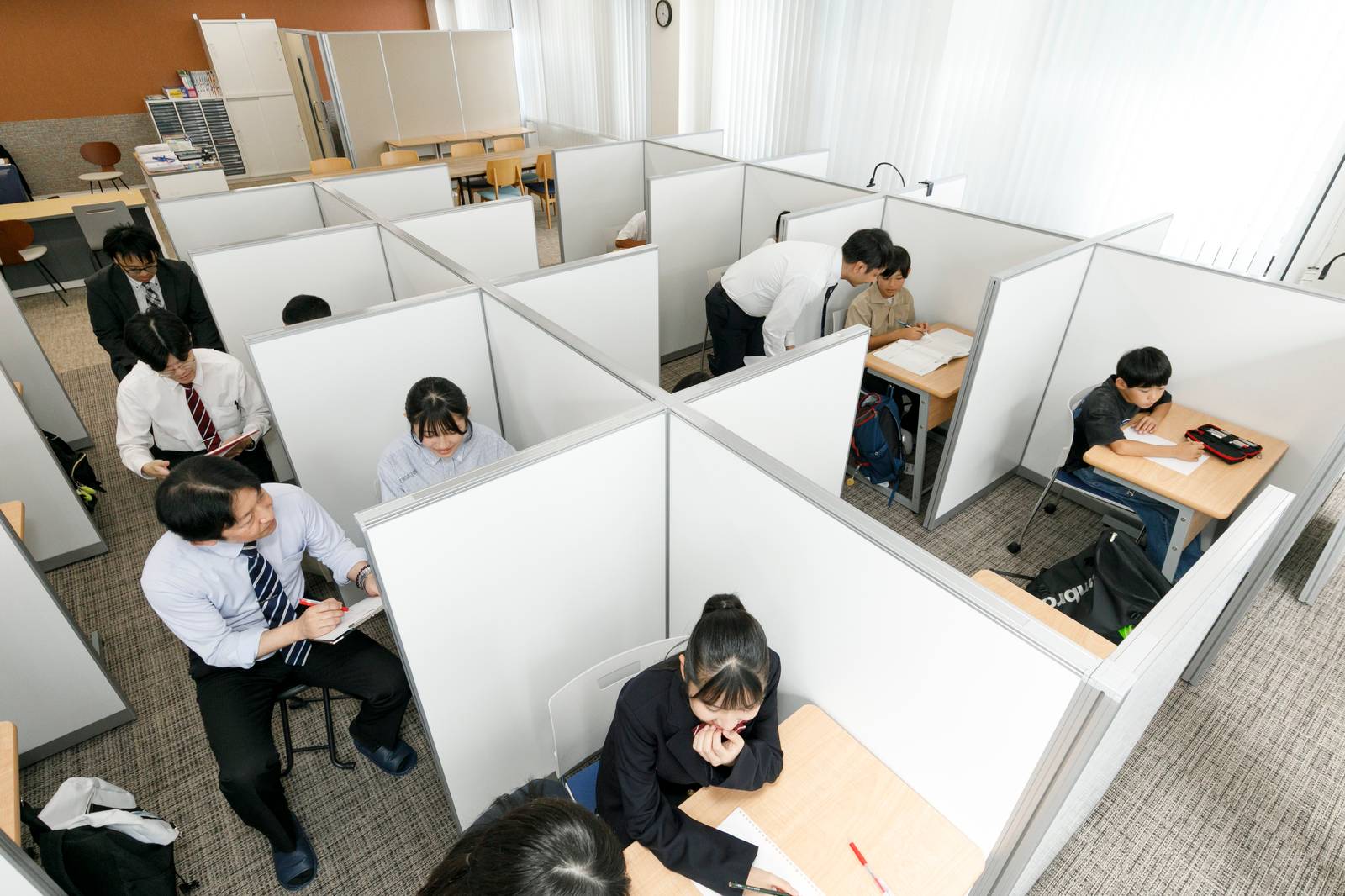 指導は一人ひとりブースで区切られた空間で行われます。生徒が困ったときにすぐに先生に声をかけやすい環境が整っており、わからないことがあれば、その場ですぐに疑問を解決することができます。