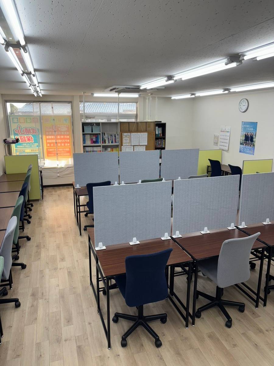エアコンは整備されており、個別指導の為、1人1人の机もパーテーションで区切られているため、良いと思います
