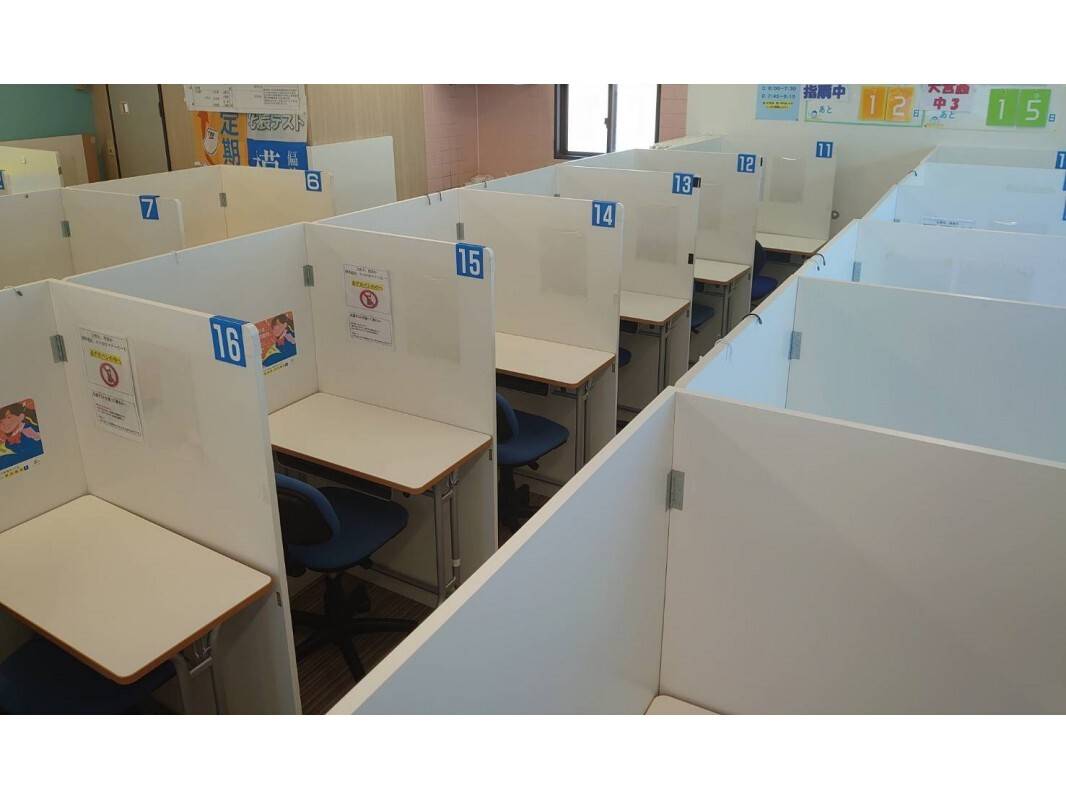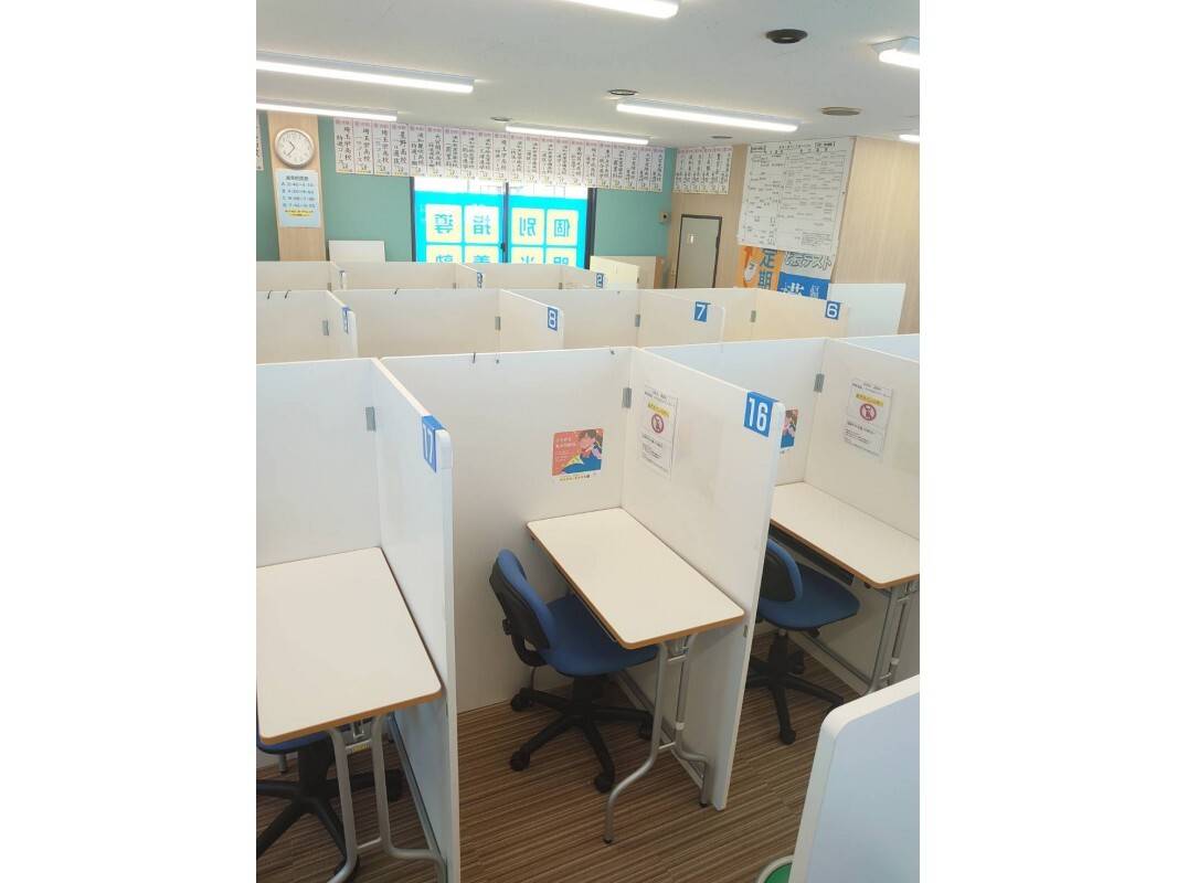 個別席もゆとりがありそうに見えました。 綺麗な教室です。 入退室もアプリでわかるので安心です。