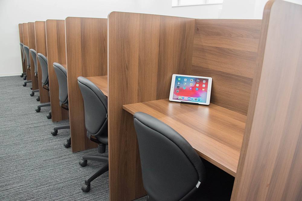 個別なのでパーテーションで区切られ、安心した環境で勉強できていると思う。空調も効いており、快適だと聞いている。