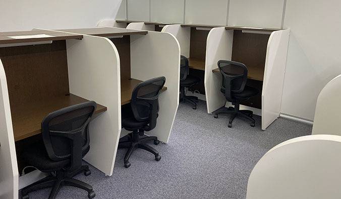 個別なのでパーテーションで区切られ、安心した環境で勉強できていると思う。空調も効いており、快適だと聞いている。