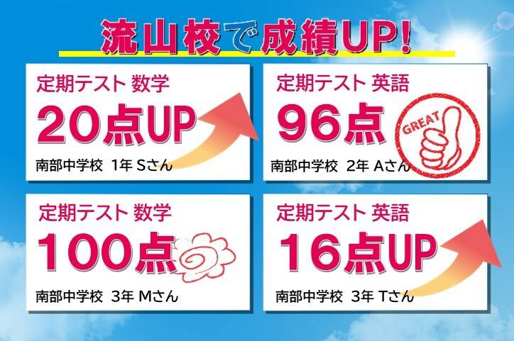通っている学校に合わせたテスト対策ができるから内申点アップにつながります。テスト後には、弱点を分析し克服するための指導をするので、受験にも対応できる学力が身につきます。