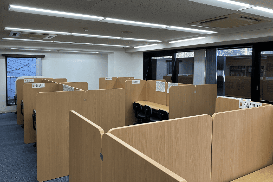 個別ブースで隣を気にせず集中して勉強できる環境で有難かった。授業がなくても宿題をやるために自習室を自由に利用できて便利だった。
