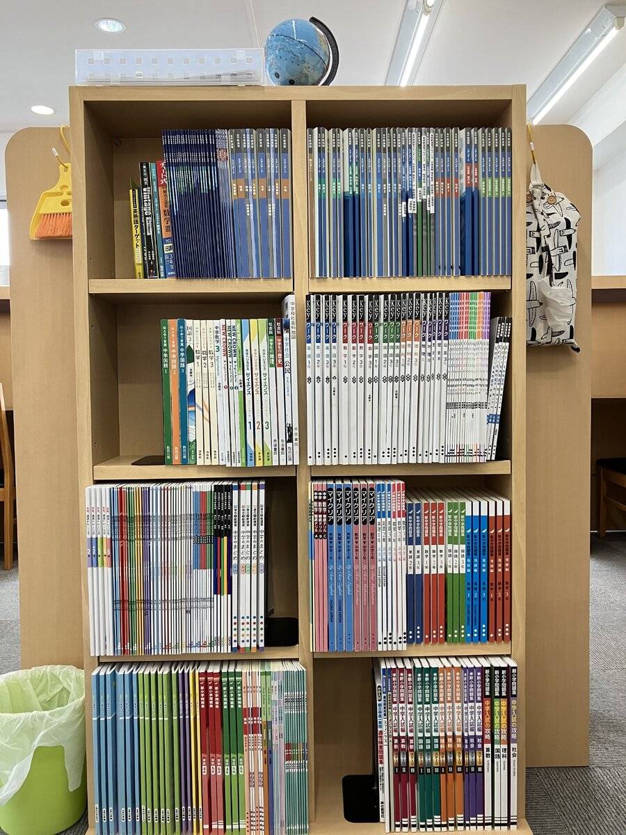 雑多にならずきれいに整いられた自習室や目指す大学の過去問題や赤本をいつでも見られるように工夫していた また最新の教材道具を整え、素晴らしかった。