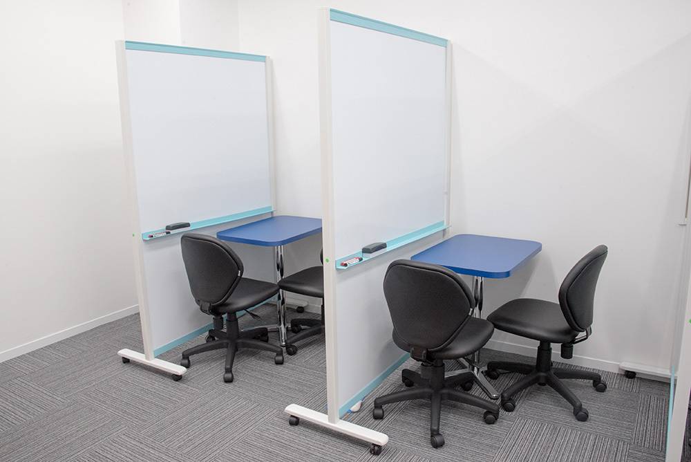 教室内は綺麗で広さも必要十分である。部屋の端に数台空気清浄機が設置されているので感染対策もしっかりしている。