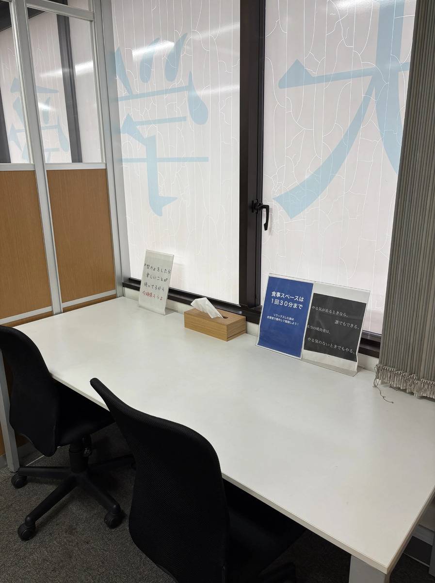 短い時間だったが他の生徒と変わらず親切に接してくれた。自分の勉強時間も確保できるスペースで良かった。