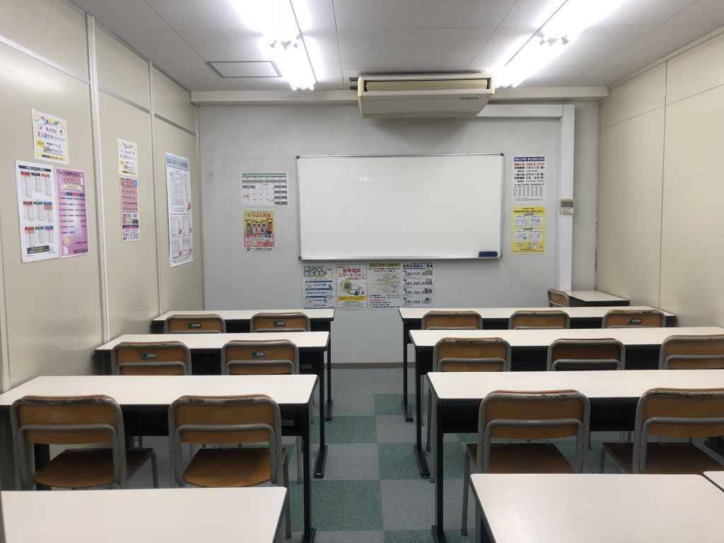 冷房完備だが古いビルで教室は狭い。幹線道路が近く車の音がうるさいため窓が開けられない。