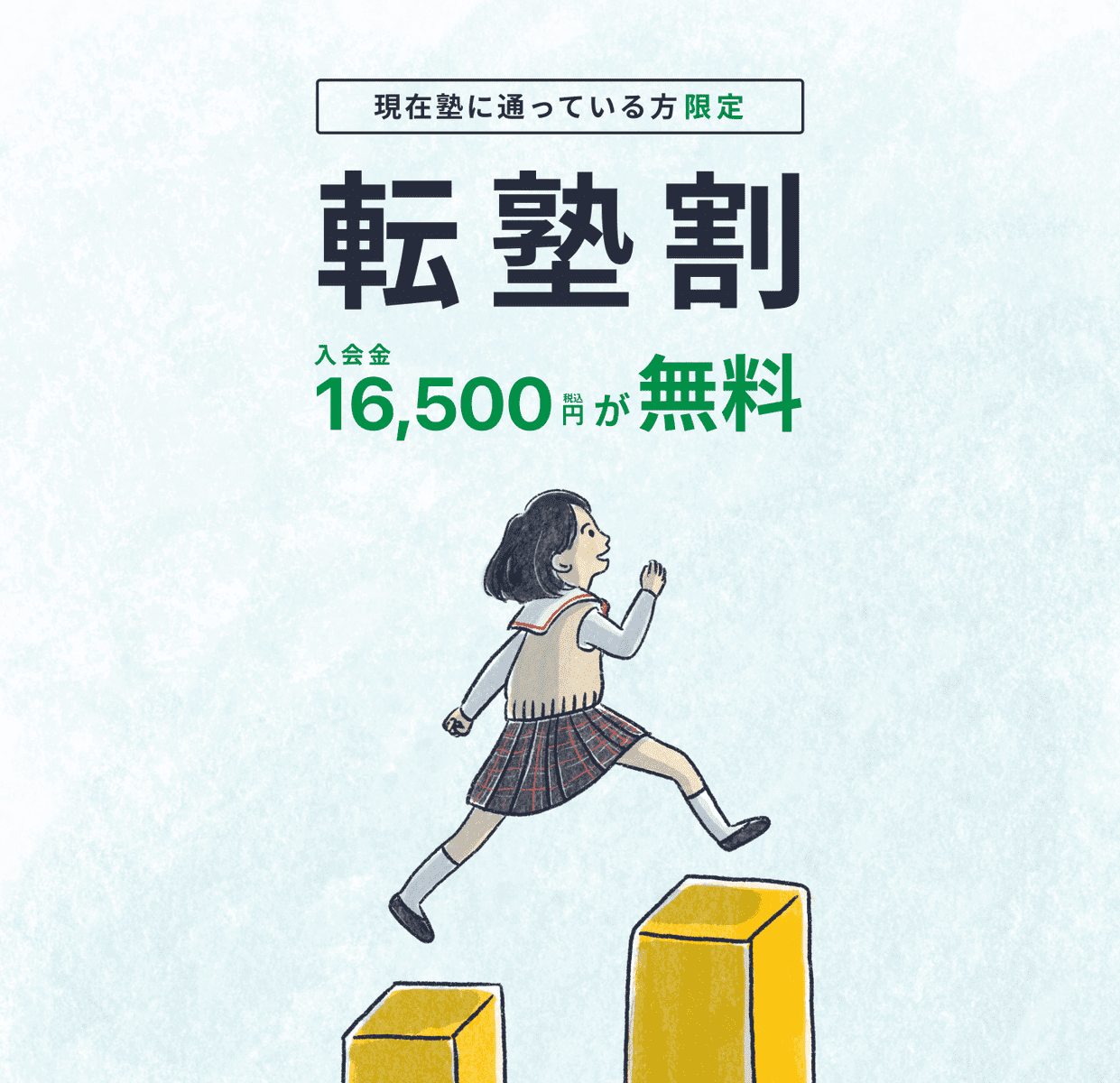 学校の定期テストでの成績アップを保証する制度です。対象は中学1年生の2学期末以降に入塾される方となります。入塾前のテスト結果にプラス20点を入塾後3回以内のテストで達成することをお約束します。万一達成できなかった場合は、その後の1学期間の授業料を無料で指導します。