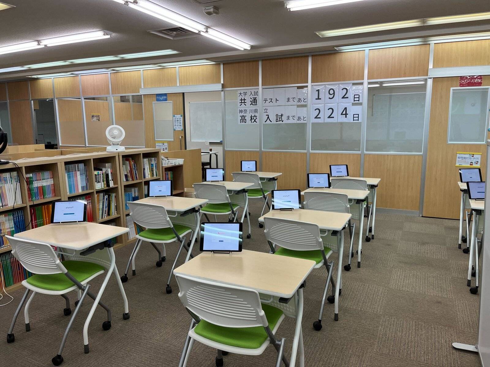 可もなく不可もなく、みたいな至って普通の教室である。強いていうなら授業スペースは仕切りがあっていいが、自習スペースと授業スペースが一緒なので自習するには少しうるさい。