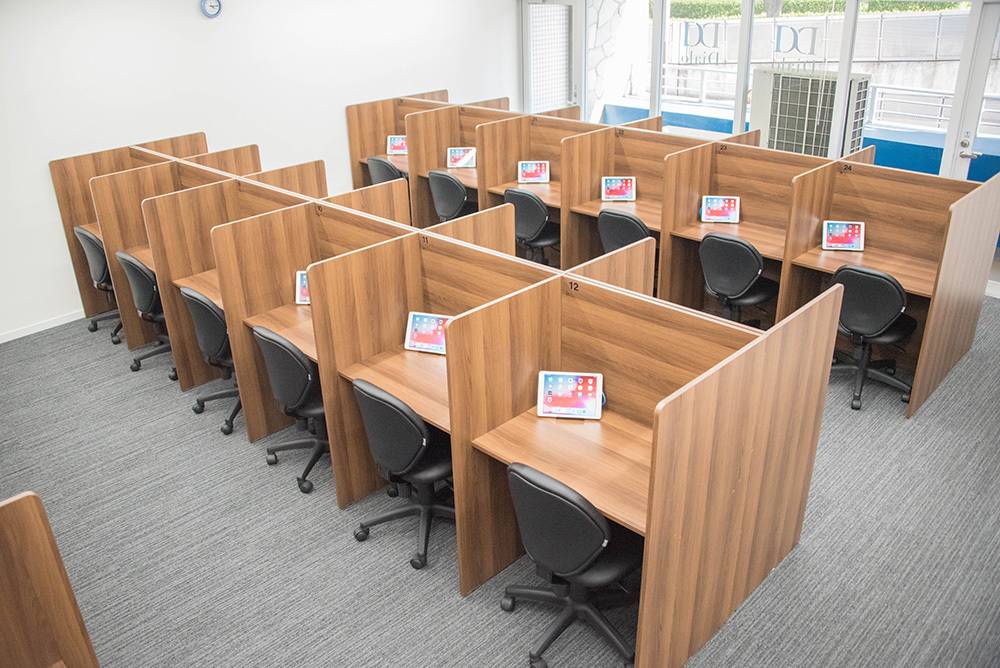 設備は普通かなと思います。でも、冷暖房が普通に利いていて問題ないです。本番の試験会場(公立高校)だってそんなに良いわけではないのでちょうど良いです。