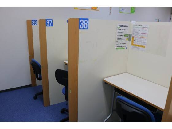 室内は明るくきれいなので勉強しやすい環境だと思います。 隣の席との間には衝立もあるので集中しやすそうです。