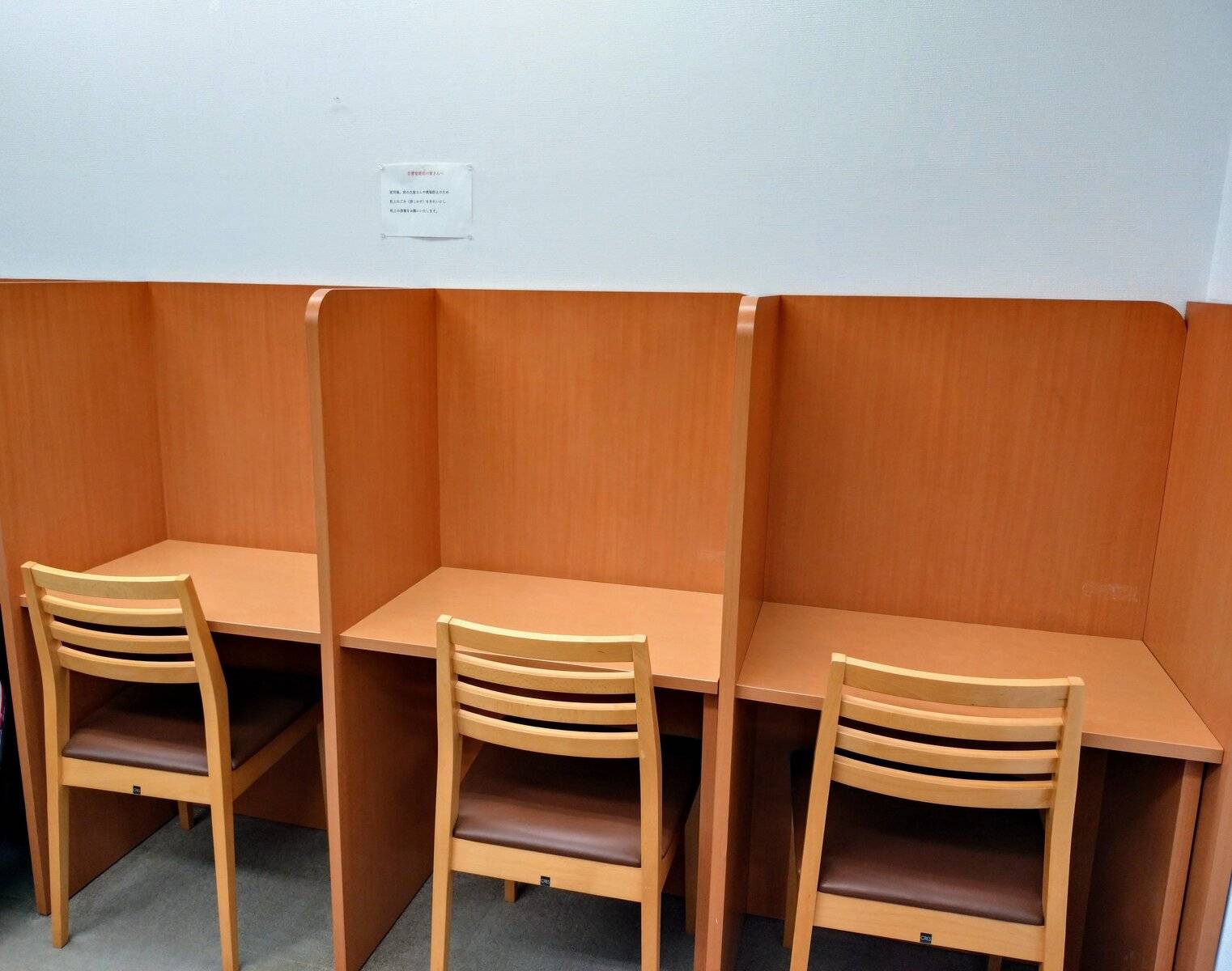 室内は明るくきれいなので勉強しやすい環境だと思います。 隣の席との間には衝立もあるので集中しやすそうです。