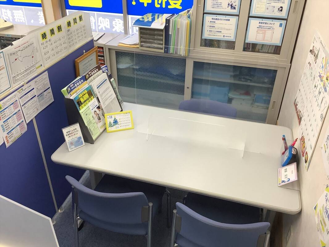 教室が狭い感じがしますが、間仕切りで仕切られているのでいいと思う。ただ、入り口から席が近いのが気になります。