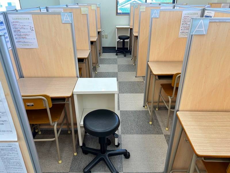 そもそも教室の中がすごく綺麗で1人1人仕切りで分けられているところもすごくいいと思った。自習室もあるし設備はすごくいいと思う。