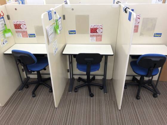 自習室も整っていて良いと感じた。 ほぼ、マンツーマンで教えてくださるので、机に仕切りが付いていて、設備は充実していると思う