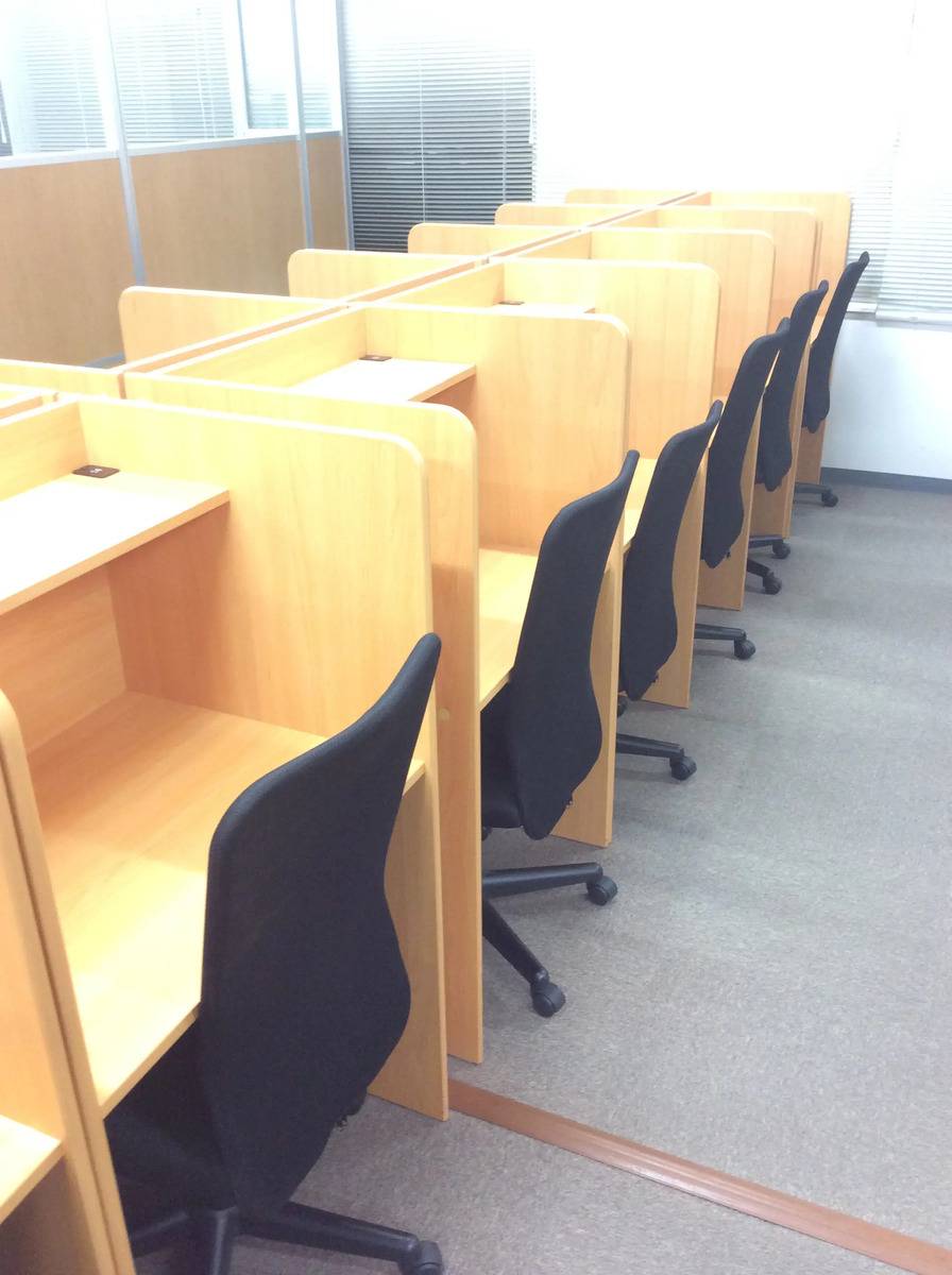 夏の場合は自習室に、各テーブルにハンディーファンを設置しているので、涼しく過ごせています。