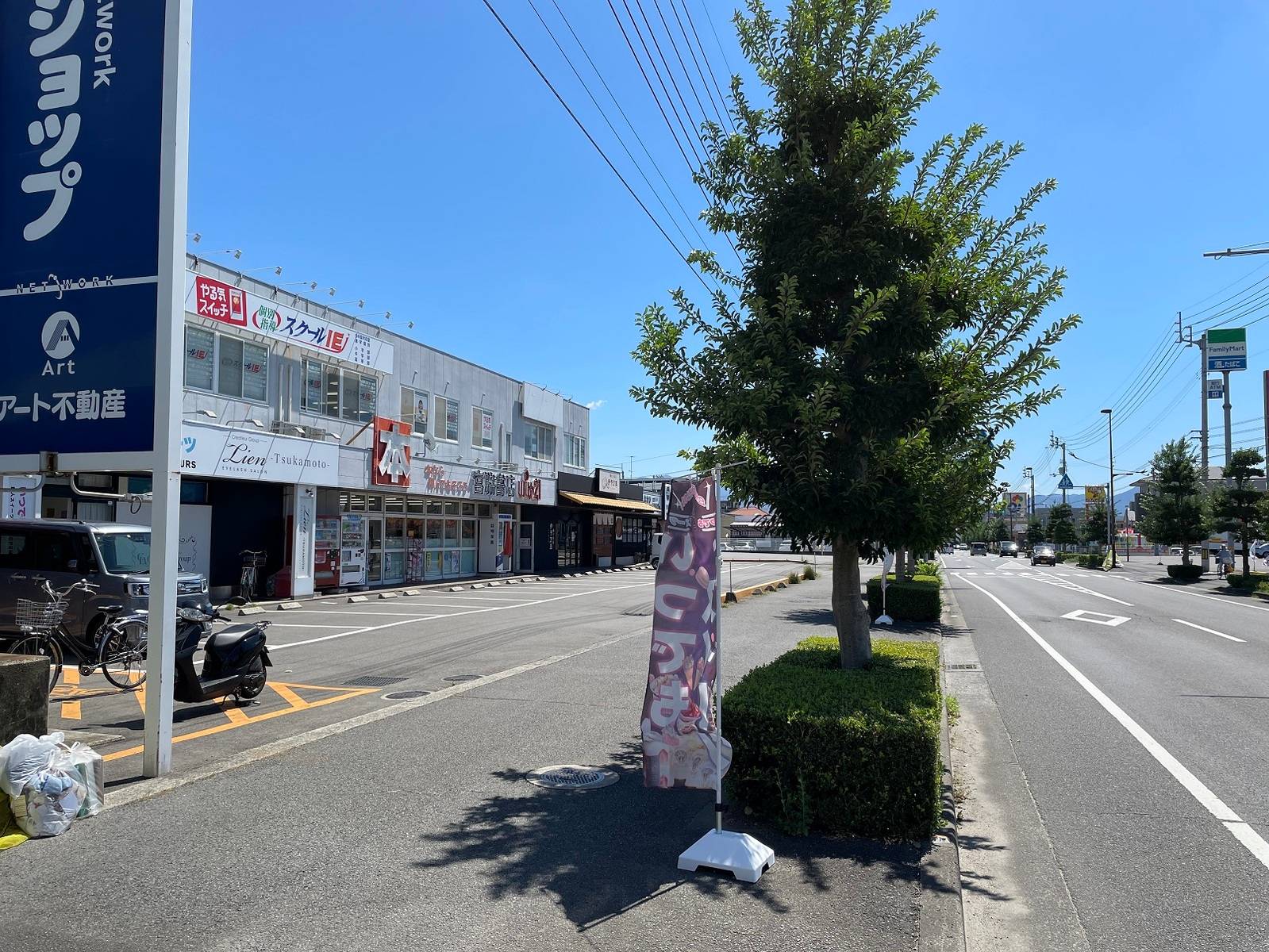 商業施設あり、駐車場が確保できるのはよかった。 人通りも多くあんしん。 ただ狭いので、周りが気になってしまう
