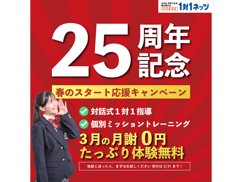 今なら入会金と授業料が1か月分無料です。