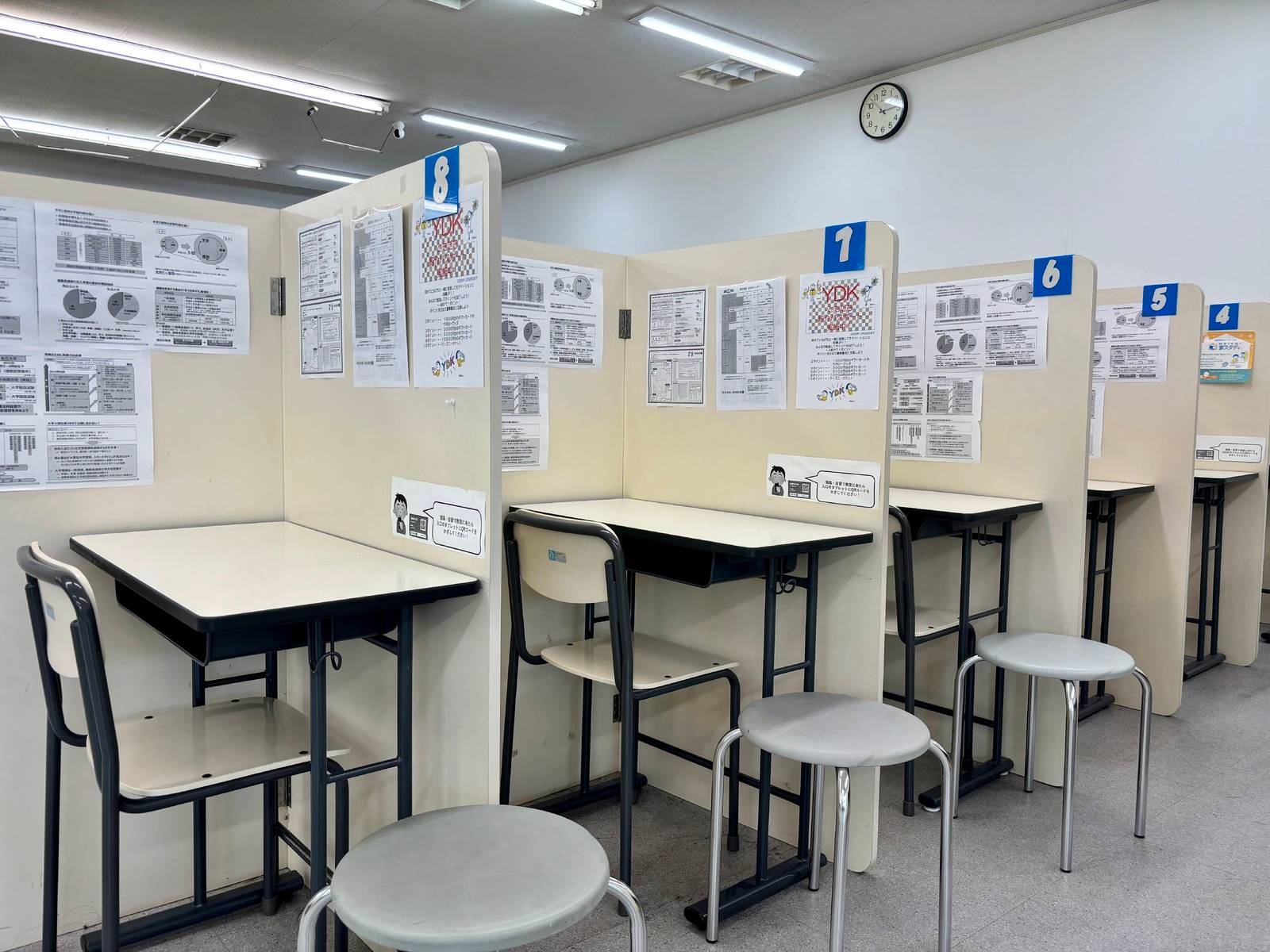 中学生などで、うるさかった人もいたし、自習室で、映像授業も受けていたが、自習室と、個別指導を受ける場所の間にドアや壁などの仕切りがなく、話声が漏れ聞こえてきたので、集中できないこともあった。