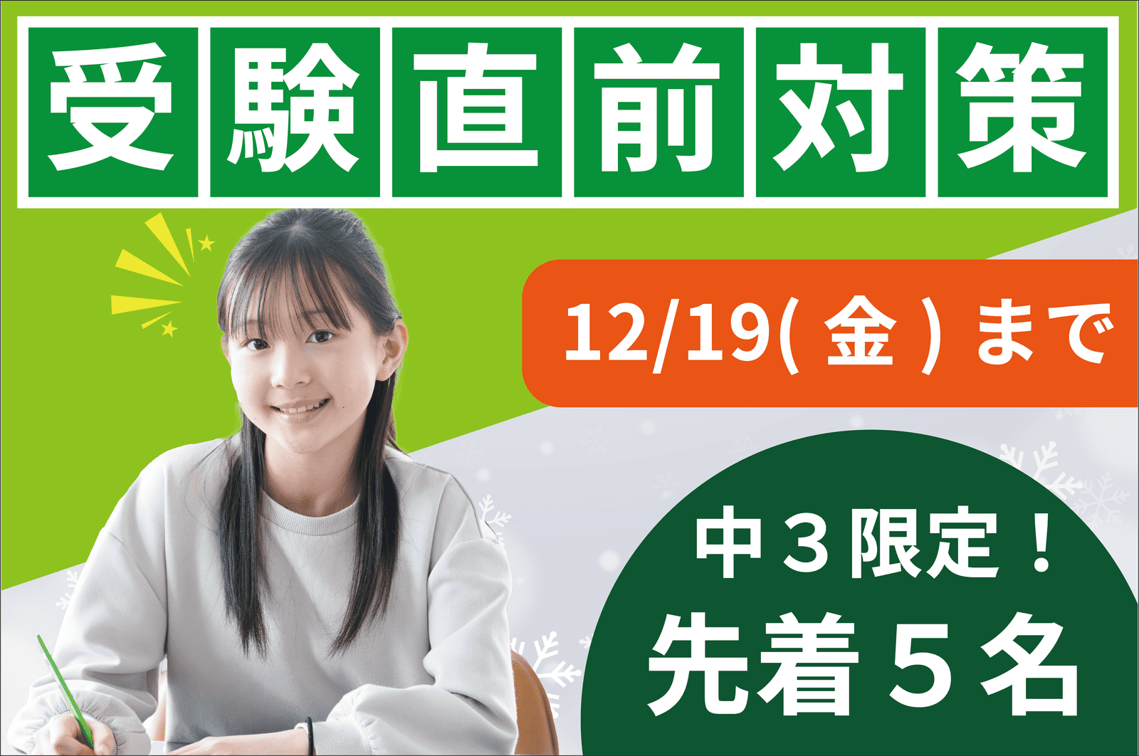 【対象学年:中3】 先着5名限定!受験直前対策キャンペーン!《12月19日まで》