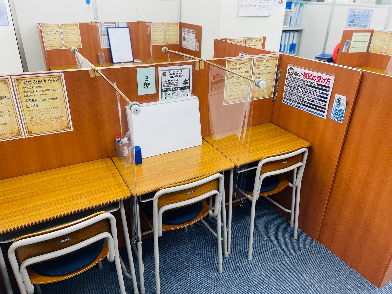 自習スペースが設けられていてとても勉強しやすかったです。また授業の場所も各ブースで別れているのでやりやすかったです。