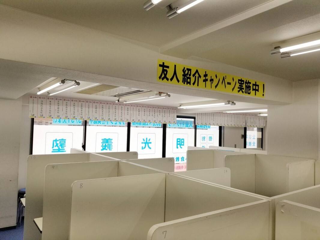 綺麗な教室だった。トイレも男女別で清潔。やや狭い教室で、ブースの間を通る時は少し大変だがそれ以外問題はなく、空調も年中快適だった。