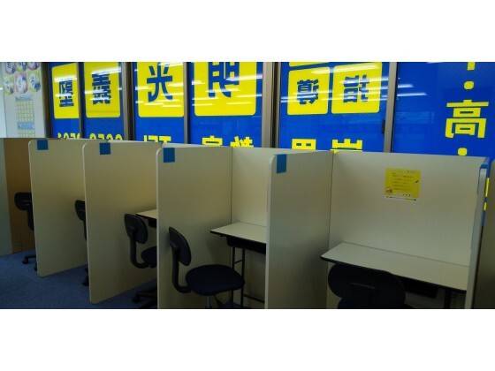 机ごとにパーティションで仕切られており、学習に集中しやすい環境になっていると思う。 先生は常におられ、自習室も解放されているため、通学日以外でも自由に使える