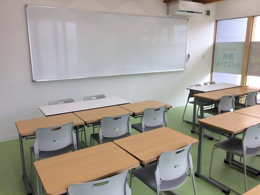 塾に入った時間と出た時間を知らせてくれて安心。 冷暖房完備。 ガラス張りで、密室にならず安全。