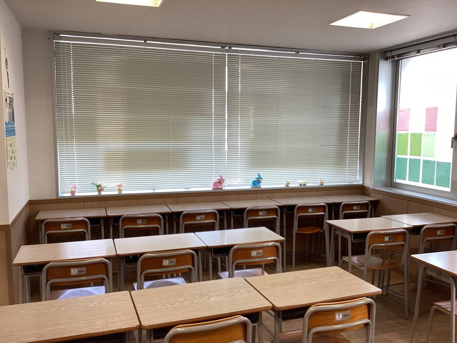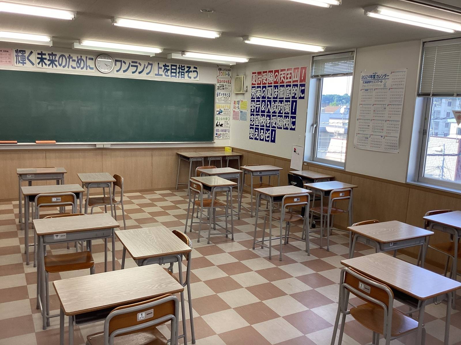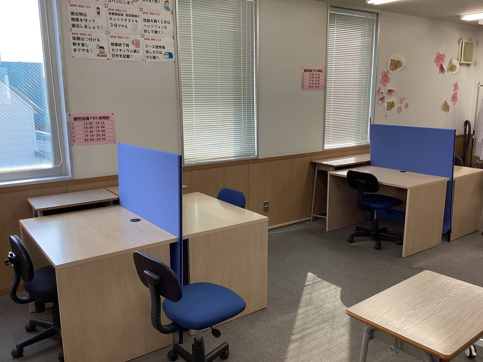 ロビーで休憩ができ、自習室はいつでも利用可能です。 教室内は夏は涼しく、冬は暖かいのでしっかり集中することができます。