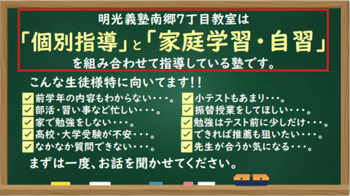 親身になって教えてくれていたため、成績がそのぶん向上したとおもいます。ただ、少し教室は狭かったように感じます。