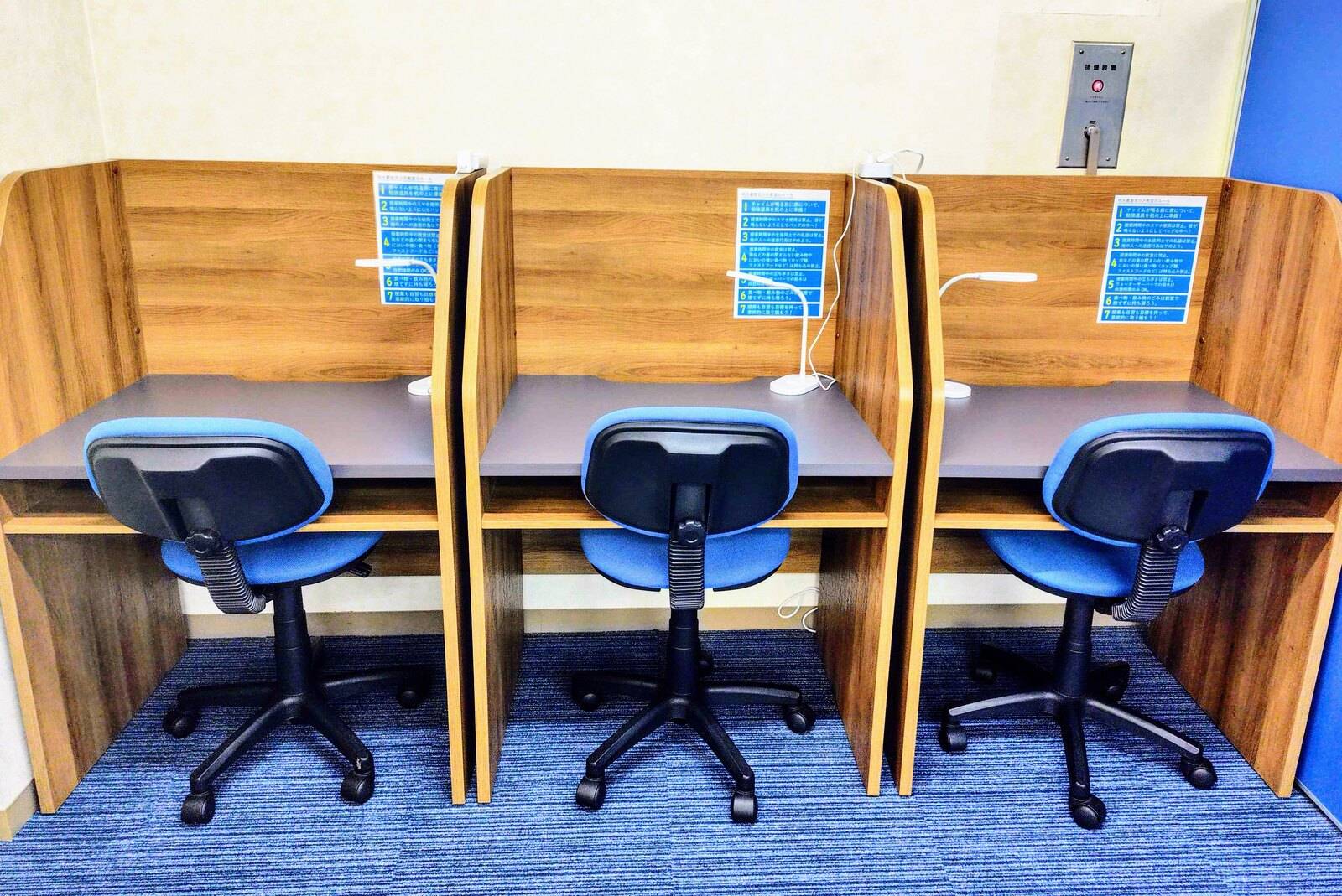 エアコンも完備していて、外部の音も聞こえなかったので多分防音だと思う。空いているブースは自習にも使えた。