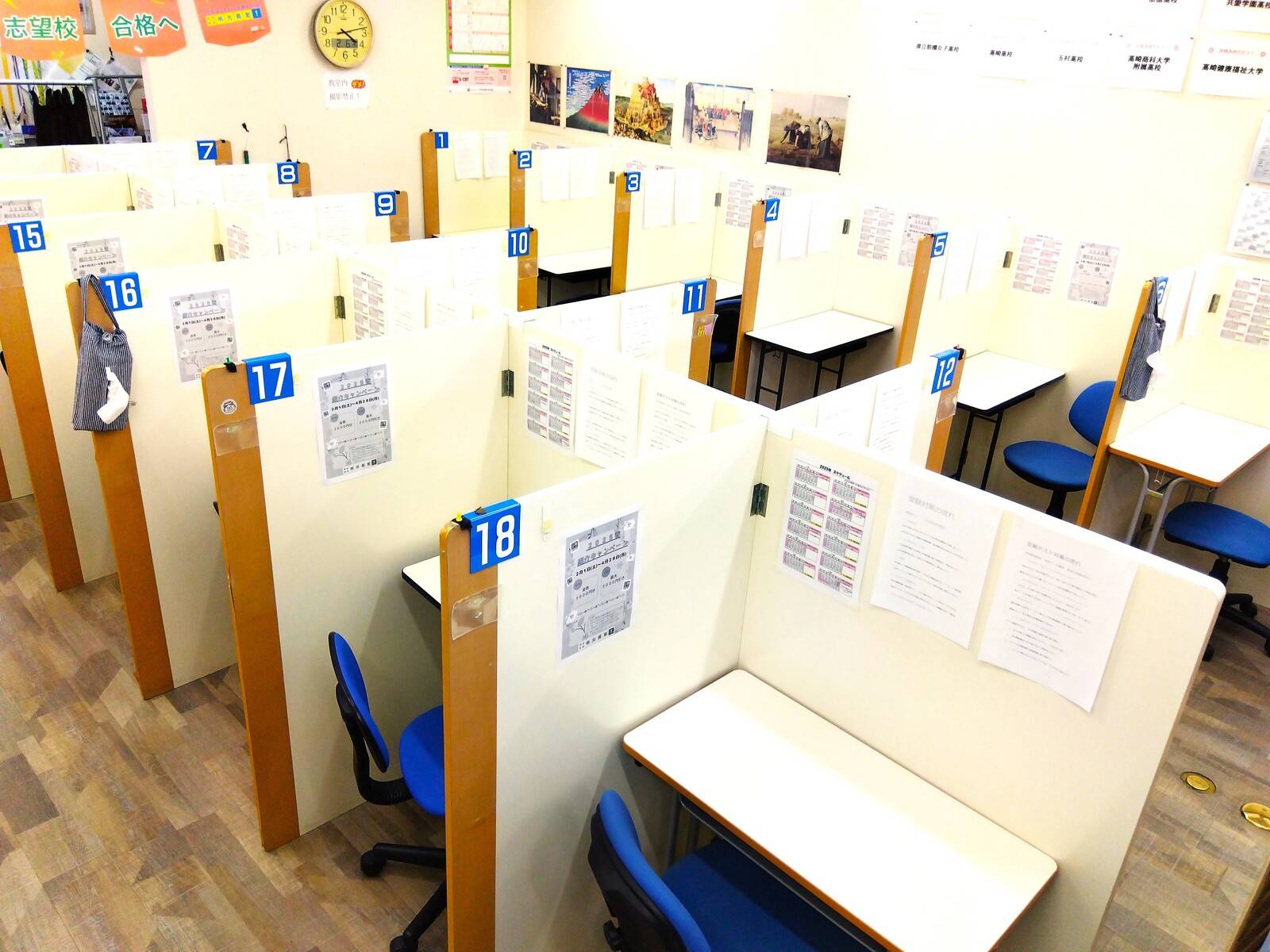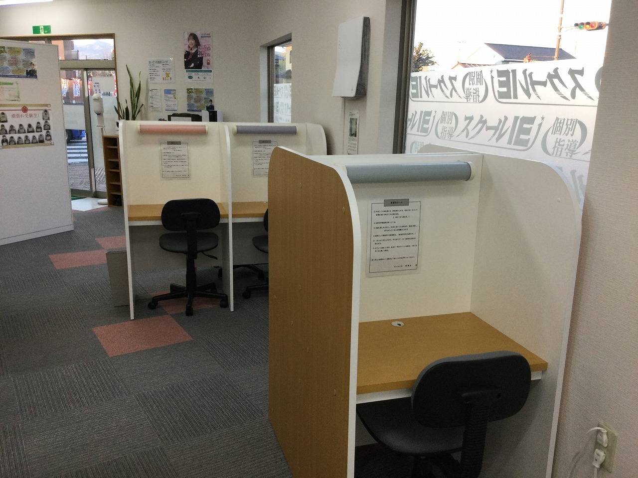 授業体制も個別ブースで仕切られているのて、集中できているように感じます。自習室も完備されています。