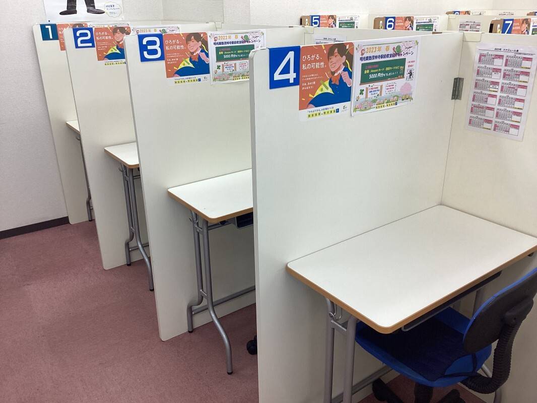 授業体制も個別ブースで仕切られているのて、集中できているように感じます。自習室も完備されています。