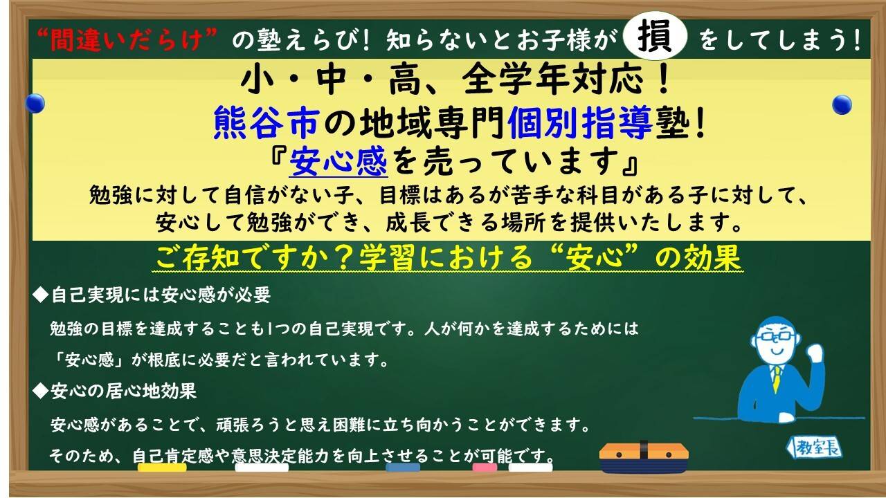 個別の指導ですので、落ち着いて勉強が出来ます。自習室も有り予習や復習も落ち着いて出来ます。