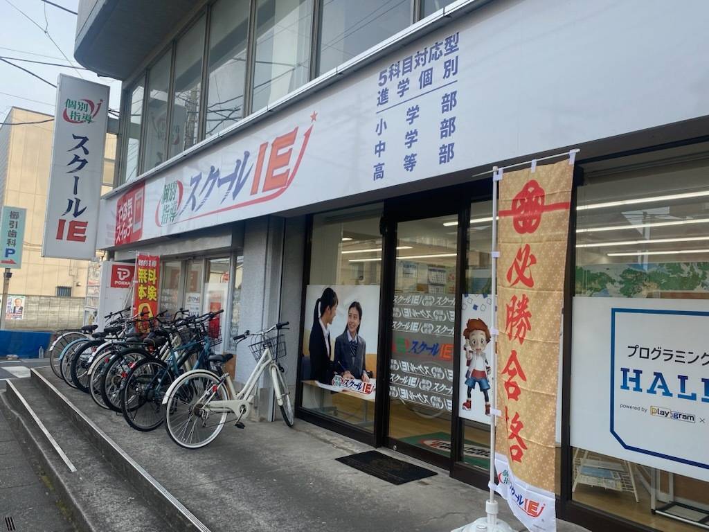 駅周辺の商業地域で、周りには百貨店やレストランが多数ある。同様の塾が軒並みあり、繁華街だが、送迎の親も多く安心感もある。