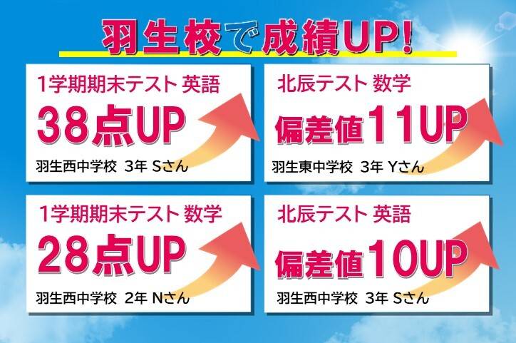 個別指導塾なので、子供のレベルを把握した上での教育スタイルだからよかったです。 結果、徐々に成績がアップしました。