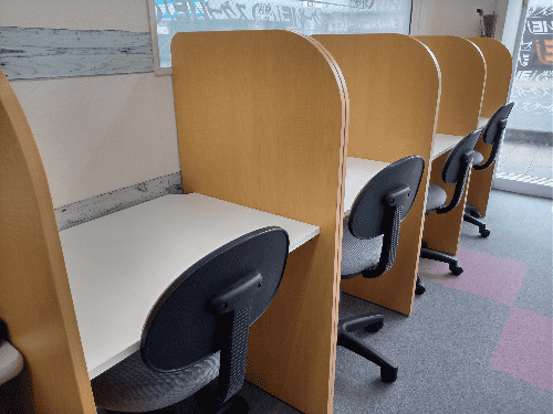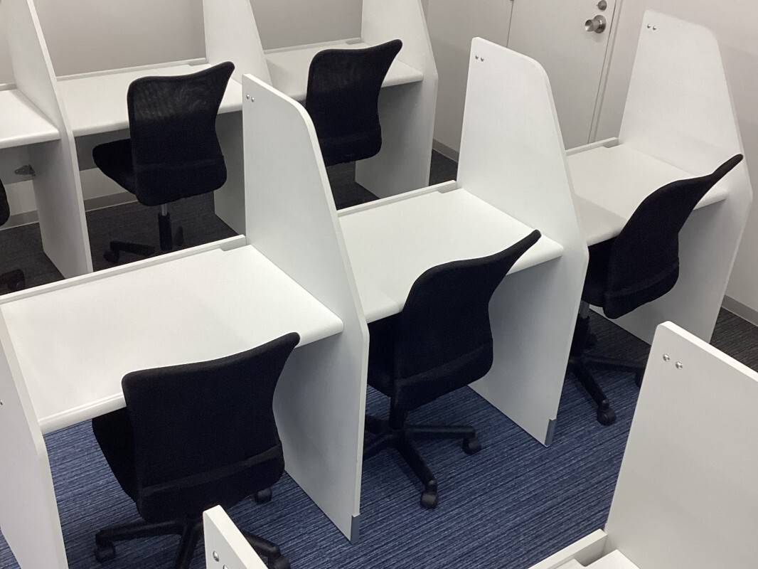 一人一人に机があって仕切られているから、そういった所はよい。 防音はそこまできいてないのでそこだけは残念。