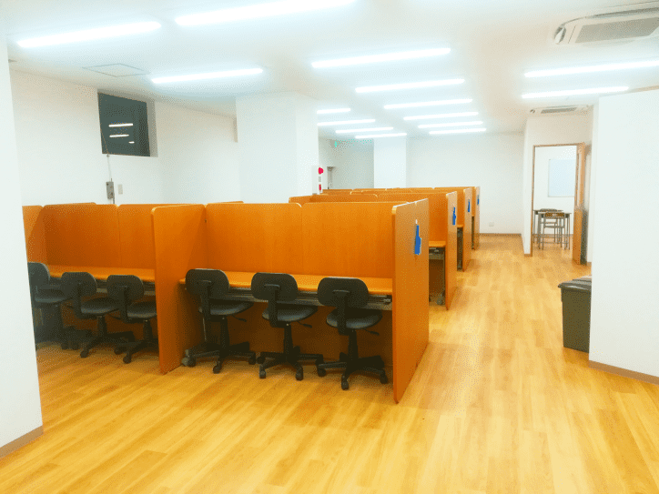 雑居ビルに学校と同じような机と椅子がある普通の学習塾です。取り立てて設備が充実しているわけではありませんが自習室は用意されています。