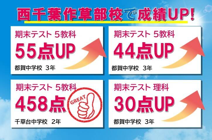 ご指導が良いです。 1番苦手教科が1番得意教科になりました。 面談でも適切なアドバイスがいただけました。 こちらに通塾して良かったです。 おすすめの塾です。