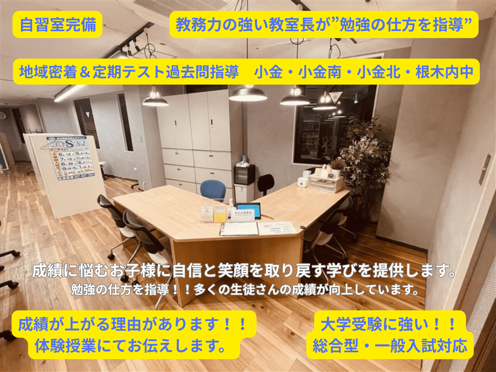 一コマ100分授業で、しっかり教えていただける他の、自習で行ったときにも解らないことを聞きやすい雰囲気で対応してくれたり、少し悩んでいると声をかけてくれるので勉強が楽しくなったと子供から聞きました。