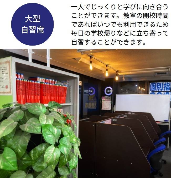 自習室がとても広くて快適です、常に喚起もされておりエアコンや扇風機もあるので息が詰まることはありません集中して勉強にとりくめます。