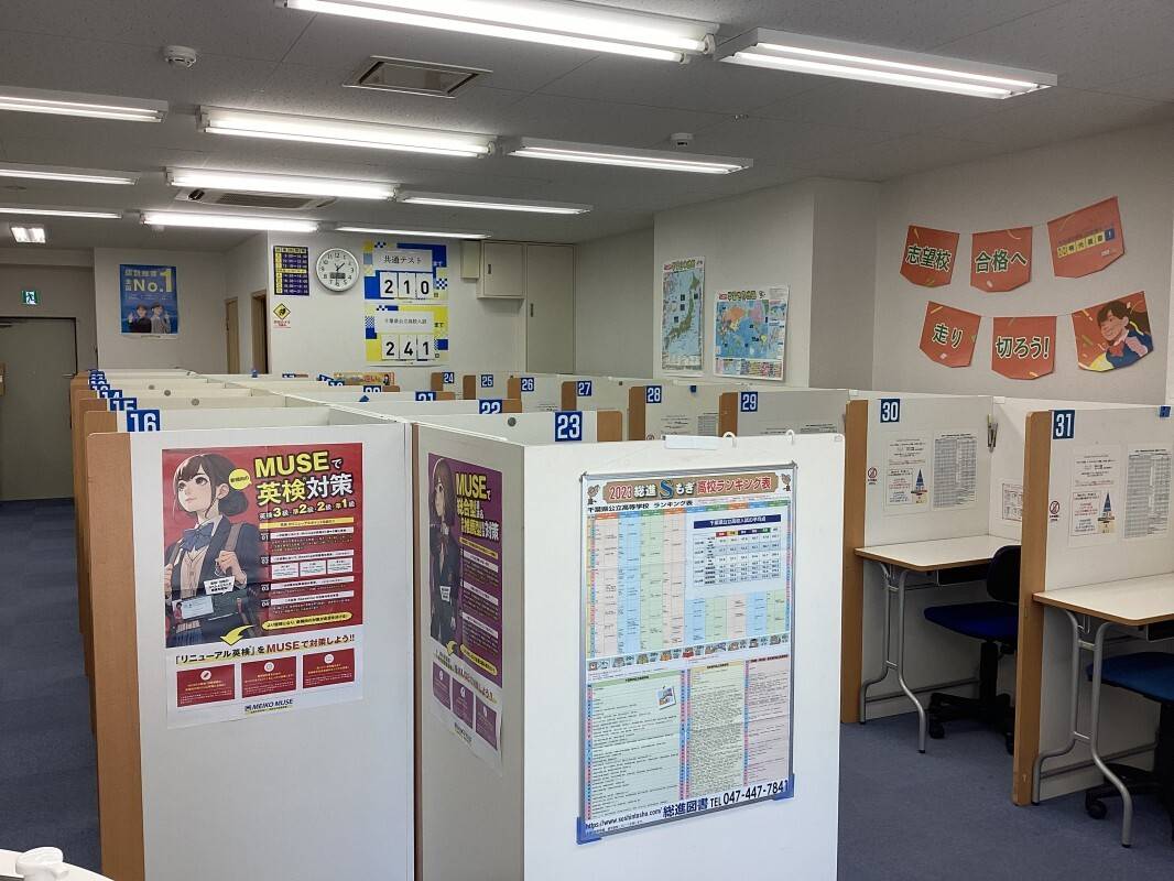 古いビルの中で窮屈そうに見える。また、教えている声が届かないような静かな自習室があると良いと思う。