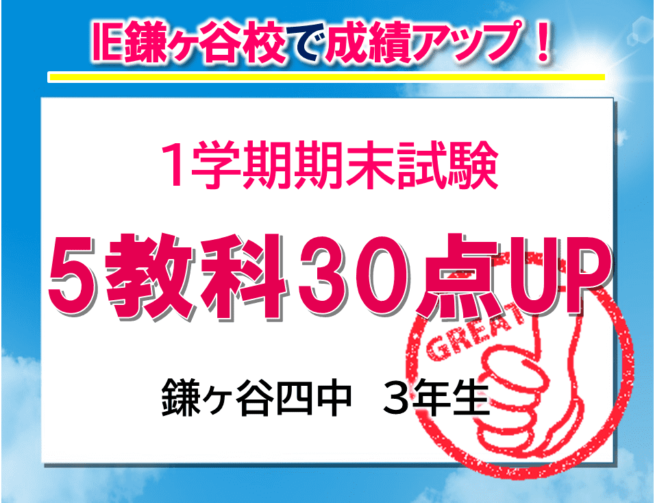 勉強の習慣をつけることができました。私立受験では無事合格し定期テストでは最終的に400点を超えることができました。