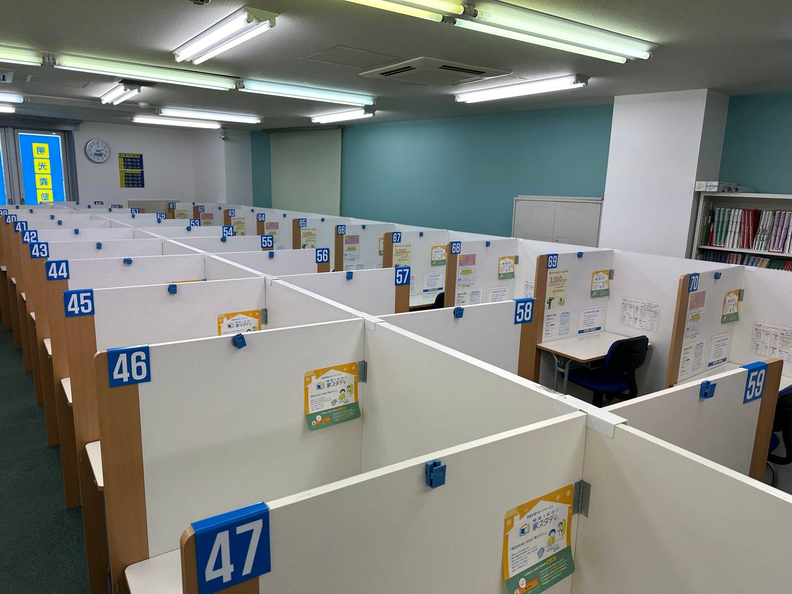 自習室がとても広くて快適です、常に喚起もされておりエアコンや扇風機もあるので息が詰まることはありません集中して勉強にとりくめます。