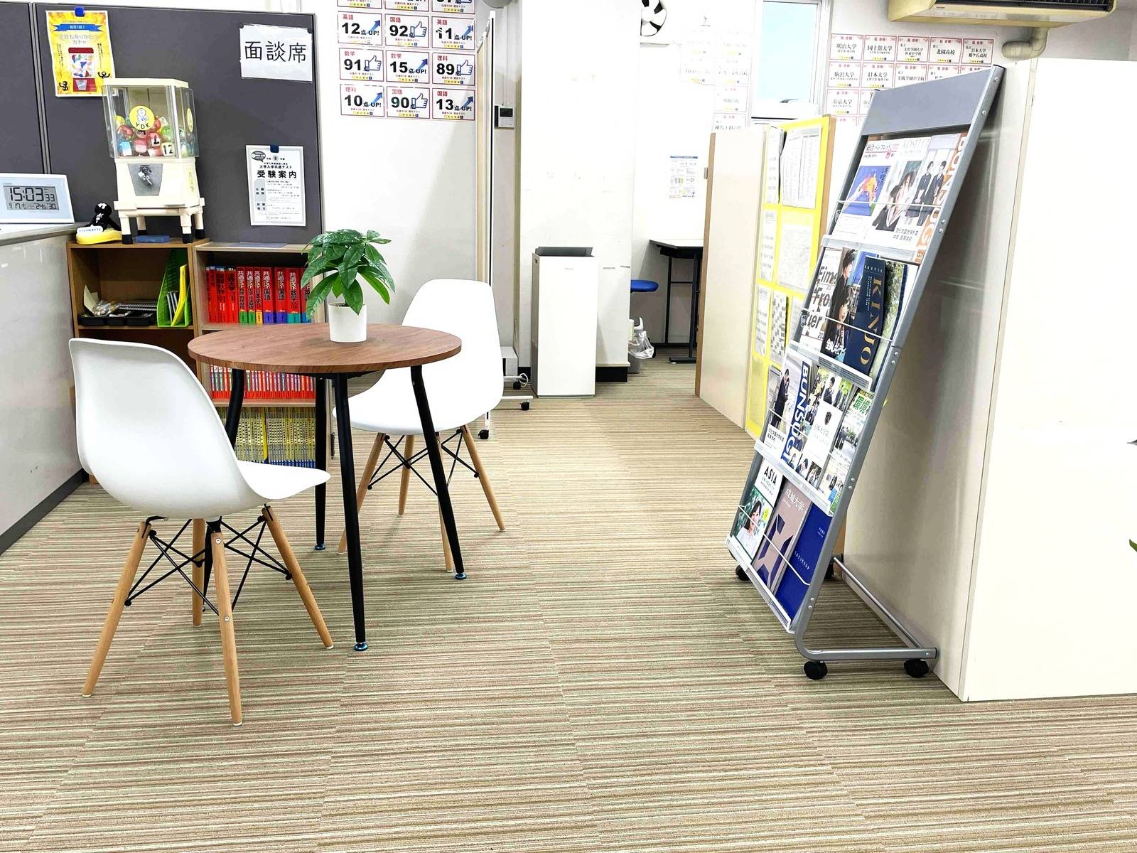 自習室も使えて、前後の時間を有効に使えるのが良い。 授業のない日でも利用可能。 授業スタイルが1対2で、少々狭く感じるようなのは仕方ないところかもしれない