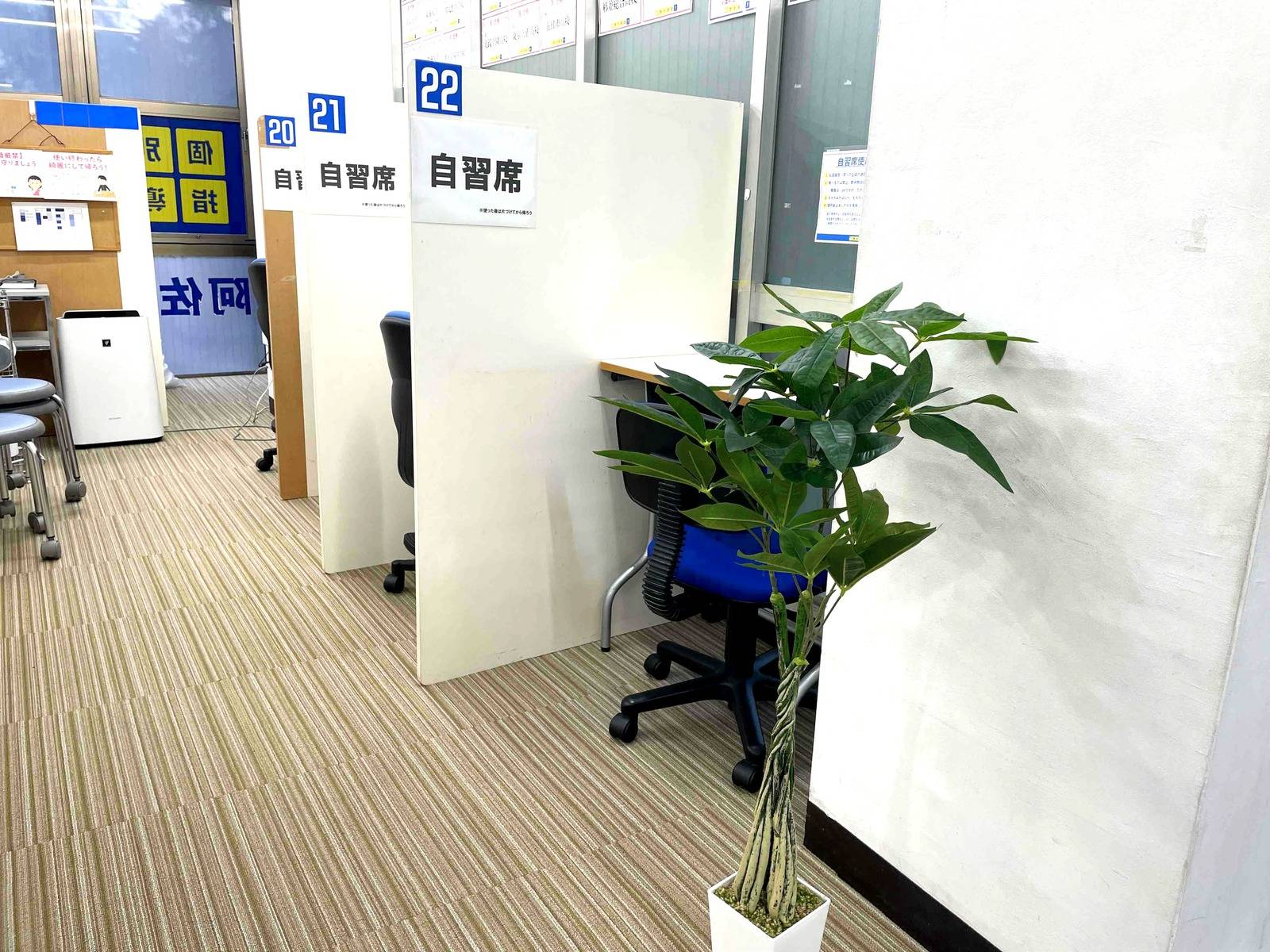 白を基調とした清潔感ある室内と、空調や加湿がしっかりと効いていて、夏でも冬でも快適に学習できる環境だったから。