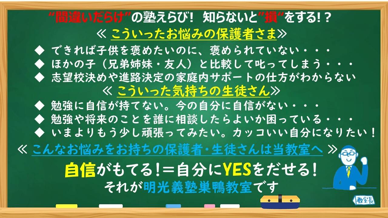 いまは受験対策を徹底してくれていて、テキストなども指示をくれるので購入しやすい。また、それに添って授業してくれるので良い。