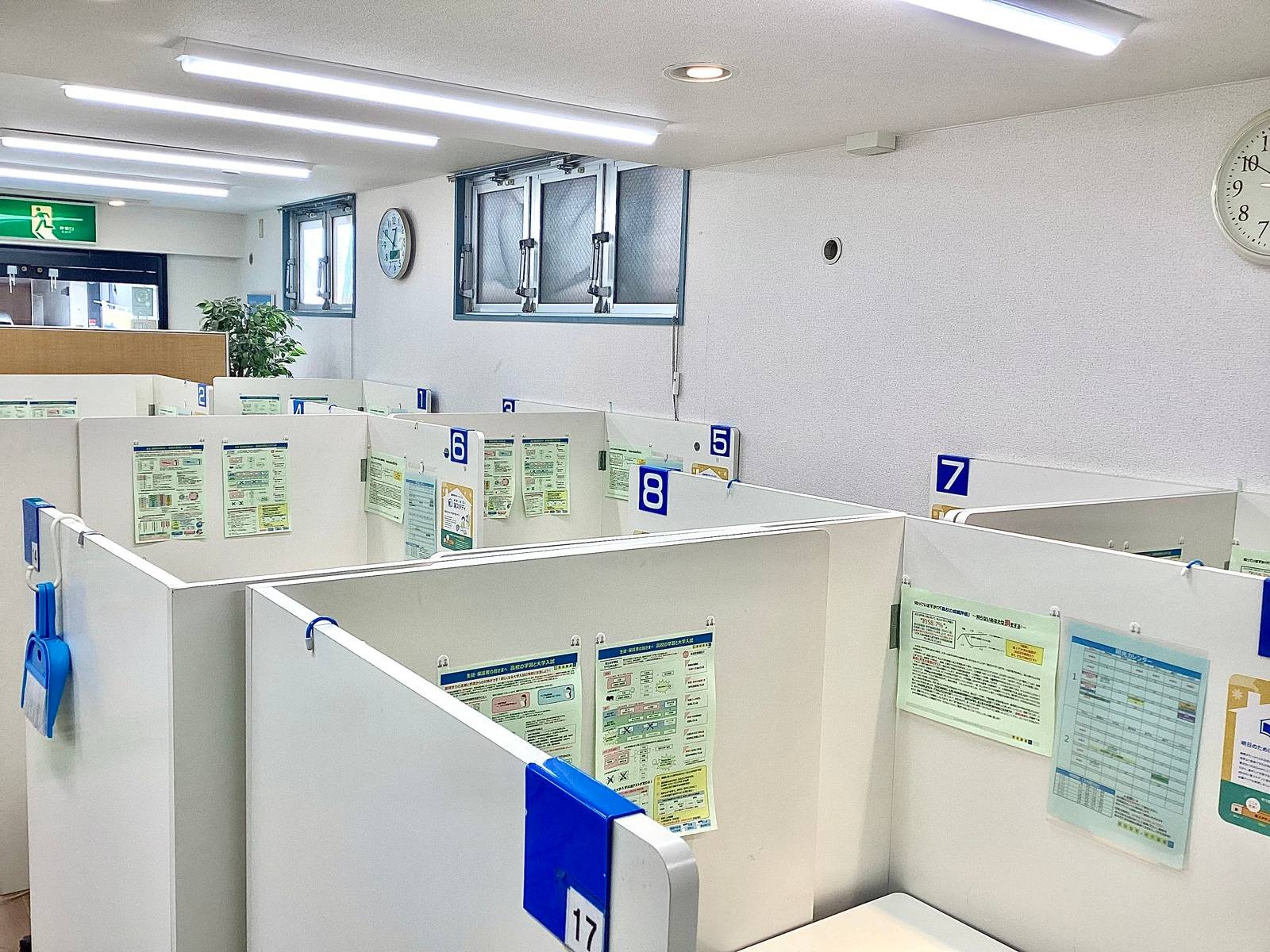 個別で壁が付いているのはよいが、自習スペースが小さかったのでその日に入っている生徒によってはうるさくて集中出来なかった。